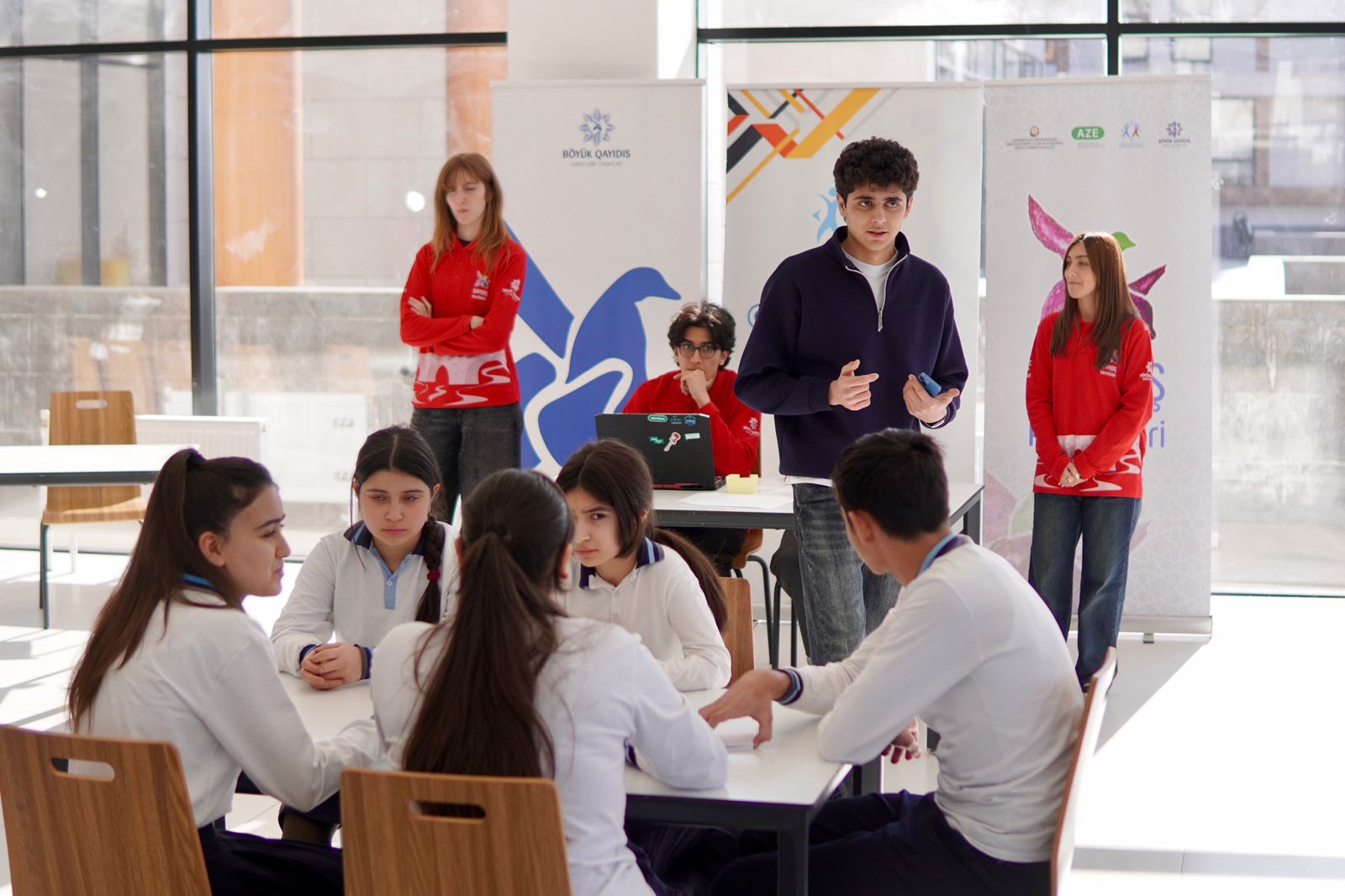 Mərasimdə Gənclərin İnkişaf və Karyera Mərkəzinin Baş direktoru Azər Əliyev, Azərbaycan Respublikasının Gənclər Fondunun şöbə müdiri İsmayıl Süleymanov və “Böyük Qayıdış” Gənclər Təşkilatının sədr vəzifəsini müvəqqəti icra edən Hikmət Qaffarov çıxış edərək, hər il ölkəmizdə təntənəli surətdə Azərbaycan Gəncləri Günü kimi qeyd edilən bu əlamətdar tarixin uzaqgörən siyasətçi, dahi lider Heydər Əliyevin adı ilə bağlı olmasını diqqətə çatdırıblar. Qeyd olunub ki, əsası Ulu Öndər tərəfindən qoyulan gənclər siyasətinin əsas hədəflərindən biri gənclərin cəmiyyət həyatının bütün sahələrində aktiv iştirakını təmin etmək olub.