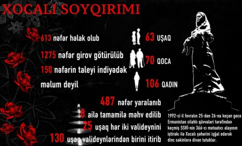 Bu faciə Azərbaycan tarixində Xocalı soyqırımı kimi anılır və hər il ölkə daxilində və xaricdə anım mərasimləri keçirilir.Həmin hücumdan sonra şəhər tamamilə işğal olundu. Evlər yandırıldı, ictimai binalar dağıdıldı, məktəblər, xəstəxanalar və mədəniyyət ocaqları yerlə-yeksan edildi. Bir vaxtlar həyat dolu küçələr səssiz xarabalığa çevrildi. Şəhərin infrastrukturuna ciddi zərər dəydi; elektrik, su və rabitə xətləri sıradan çıxarıldı. Uzun illər ərzində Xocalı viran vəziyyətdə qaldı və oraya qayıdış mümkün olmadı.İşğal dövründə təkcə binalar deyil, həm də mədəni irs nümunələri məhv edildi. Xocalı ərazisi qədim kurqanları və arxeoloji tapıntıları ilə məşhur idi. Bu abidələr regionun minilliklərə söykənən tarixini əks etdirirdi. Lakin nəzarətsiz qalan ərazilərdə talan və dağıntılar baş verdi, bir sıra maddi-mədəniyyət nümunələri məhv edildi və ya qanunsuz şəkildə aparıldı. Bu isə təkcə Azərbaycan üçün deyil, ümumbəşəri irs üçün də itki hesab olunur.Şəhərin sakinləri isə ağır qaçqınlıq və məcburi köçkünlük həyatı yaşamağa məcbur oldular. Onlar ölkənin müxtəlif bölgələrində müvəqqəti məskunlaşaraq illərlə doğma torpaqlarına qayıdacaqları günü gözlədilər. Sosial, psixoloji və iqtisadi çətinliklər onların həyatında dərin iz buraxdı. Xocalıdan didərgin düşən ailələrin bir çoxu yaxınlarını itirmiş, ev-eşiyini, bütün əmlakını geridə qoymuşdu.2020-ci ildə baş vermiş Vətən müharibəsindən sonra regionda yeni siyasi vəziyyət yarandı.