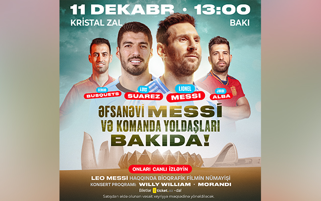 Carixeber.az “Qafqazinfo”ya istinadən xəbər verir ki, dekabrın 11-də Bakı Kristal Zalında keçiriləcək tədbirdə pərəstişkarlar dünyanın ən yaxşı futbolçusu – dünya çempionu, səkkiz dəfə “Qızıl top” mükafatı qazanan Lionel Messi və komanda yoldaşlarını görmək imkanı qazanacaq.