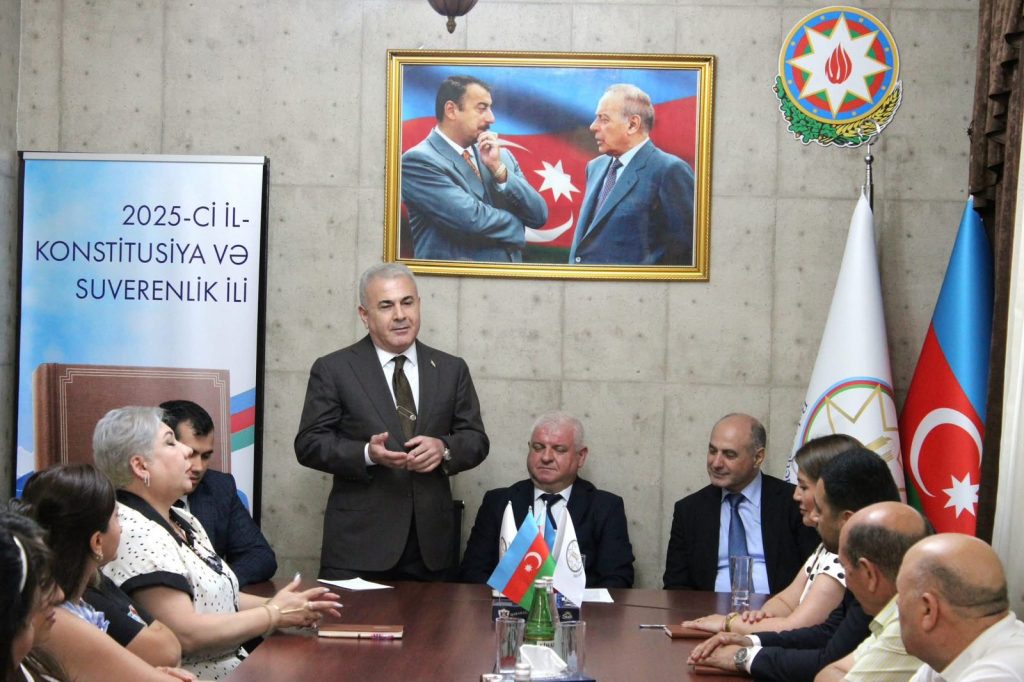 Nizami Rayon İcra Hakimiyyətinin və Yeni Azərbaycan Partiyası Nizami rayon təşkilatının birgə təşkilatçılığı ilə “Konstitusiya və Suverenlik İli” çərçivəsində 1 Avqust – Azərbaycan Əlifbası və Azərbaycan Dili Günü münasibətilə “Azərbaycan dilini qorumaq və inkişaf etdirmək hər birimizin vətəndaşlıq borcudur” mövzusunda dəyirmi masa keçirilib.