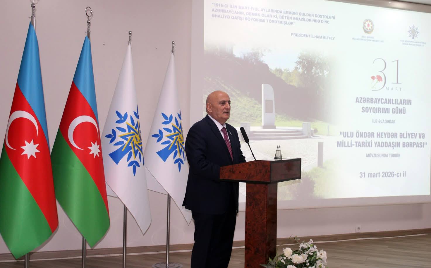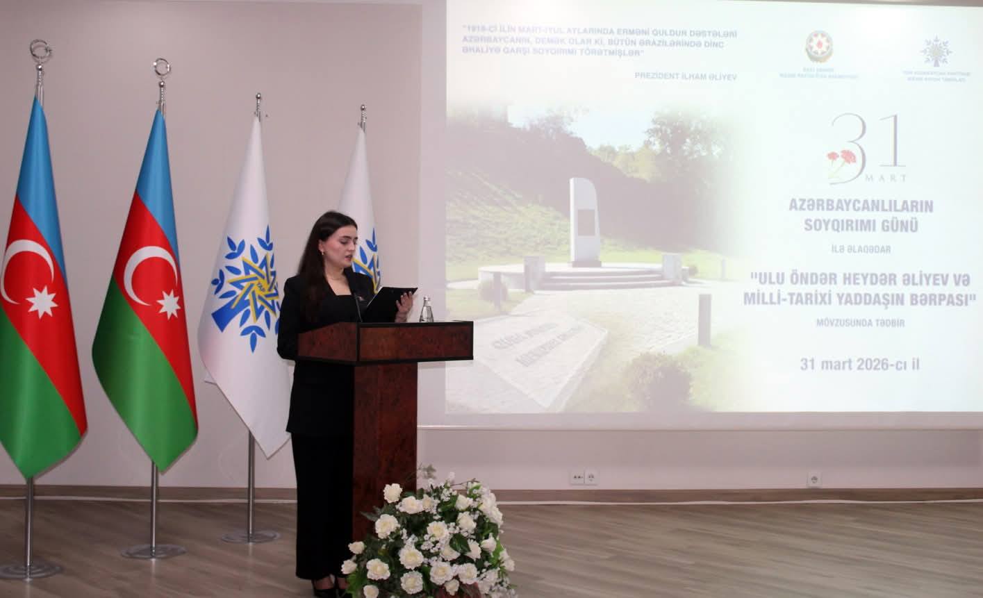 Nizami Rayon İcra Hakimiyyətinin və Yeni Azərbaycan Partiyası Nizami rayon təşkilatının 31 mart – Azərbaycanlıların Soyqırımı Günü ilə əlaqədar “Ulu Öndər Heydər Əliyev və milli-tarixi yaddaşın bərpası” mövzusunda birgə tədbiri keçirilib.
