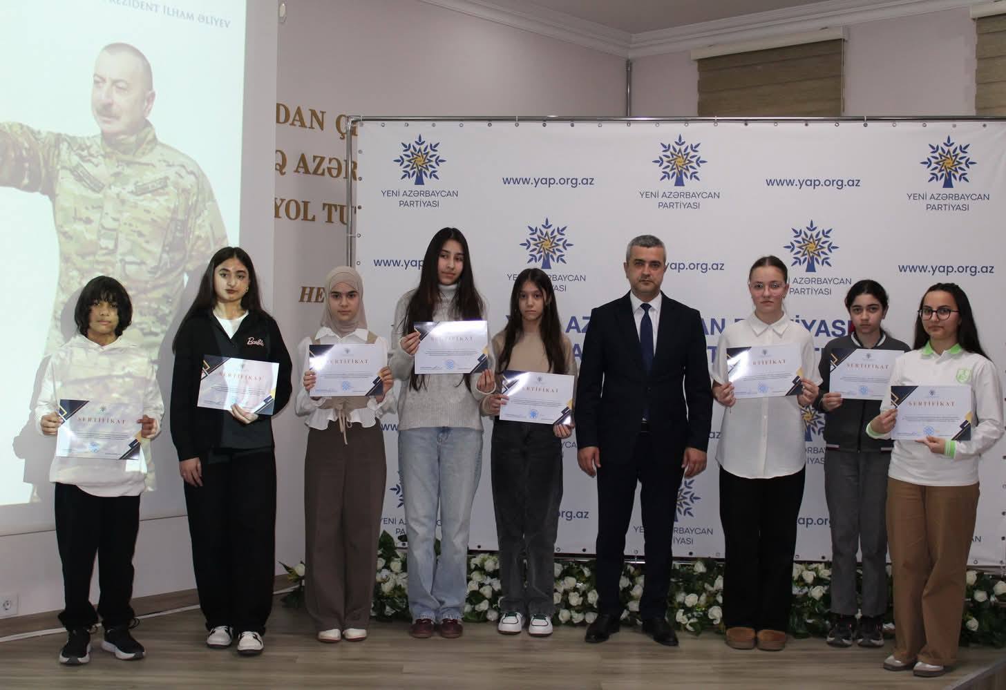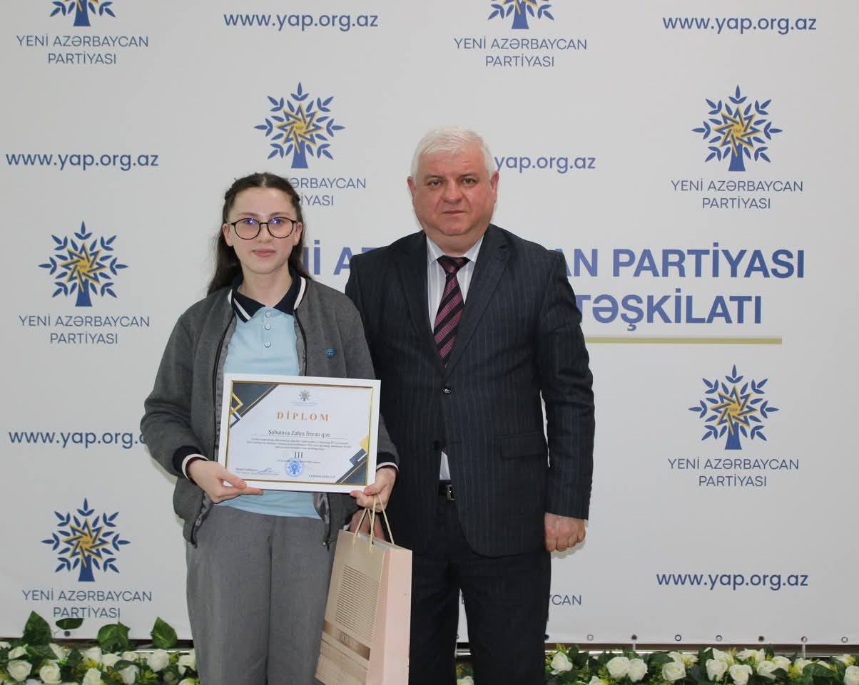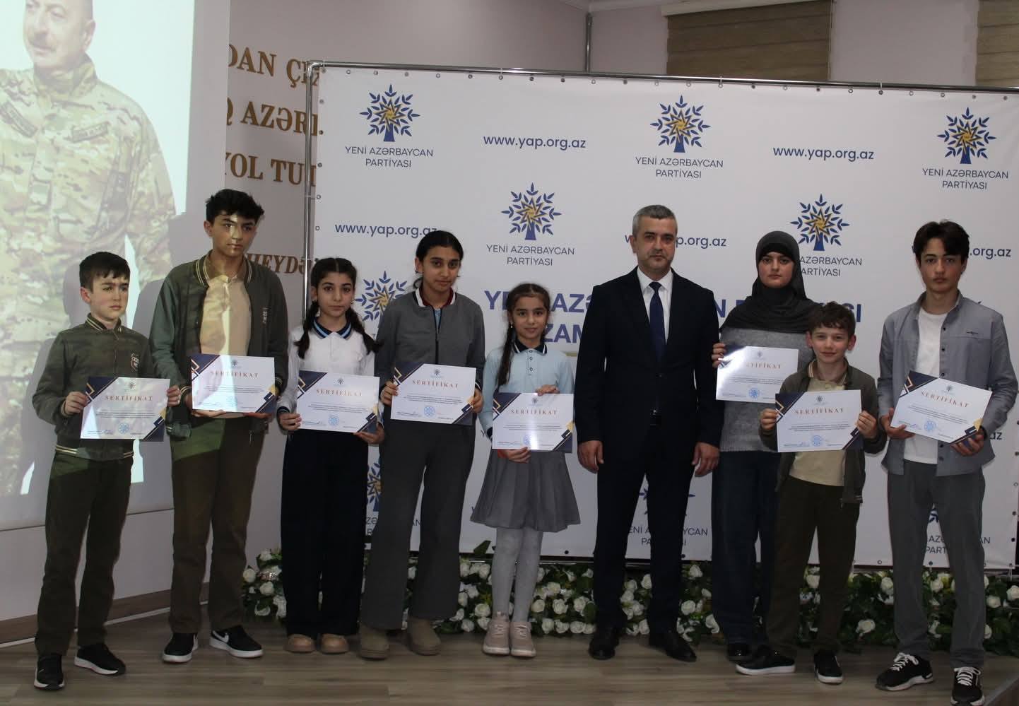 Çıxışlardan sonra “Dirçələn Qarabağ, abadlaşan Xocalı” mövzusunda keçirilmiş rəsm və inşa müsabiqəsinin qaliblərinin təltif olunması mərasimi keçirilib. Məlumat verilib ki, Nizami rayonunda fəaliyyət göstərən 30 təhsil müəssisəsi üzrə inşa müsabiqəsinə 71, rəsm müsabiqəsinə isə 49 iş daxil olub.