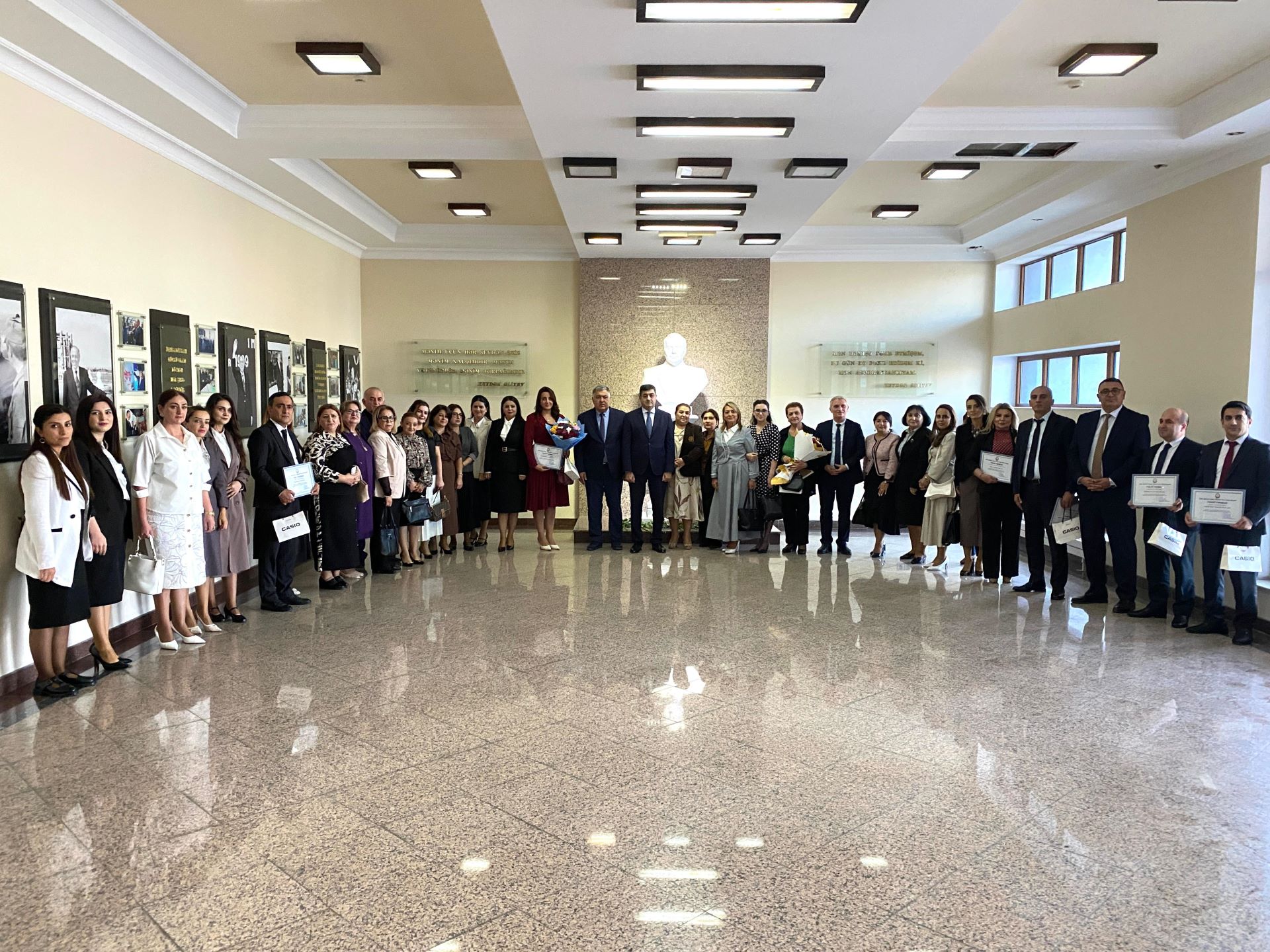 Sonra təhsilin inkişafindakı xidmətlərinə və rayonun ictimai həyatında fəal iştirakına görə fərqlənən bir qrup təhsil işçisinə Xəzər RİH başçısının və YAP Xəzər rayon təşkilatının Fəxri Fərman və hədiyyələri təqdim olunub. Tədbirin sonunda xatirə şəkili çəkilib.