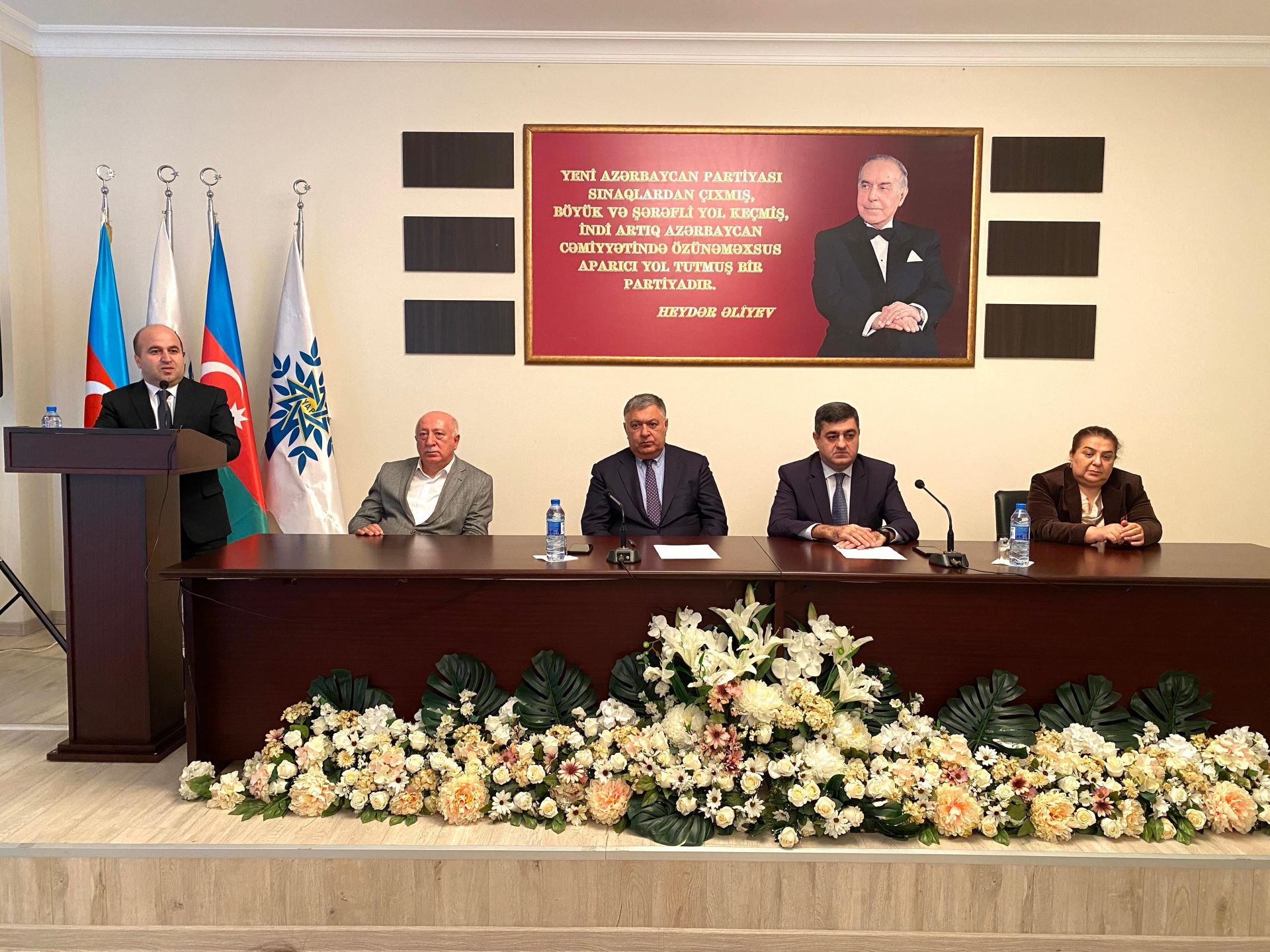 Carixeber.az xəbər verir ki, YAP Xəzər rayon təşkilatının inzibati binasında təşkil olunan tədbirdə ilk öncə qonaqlar foyedə Ulu öndər Heydər Əliyevin əziz xatirəsini yad edərək, abidəsi önünə güllər düzüblər. Akt zalında davam edən görüşdə Azərbaycan Respublikasının Dövlət Himni səsləndirilmiş, Vətənimizin ərazi bütövlüyü uğrunda canlarından keçən şəhidlərimizin əziz xatirəsi bir dəqiqəlik sükütla yad edilmişdir.